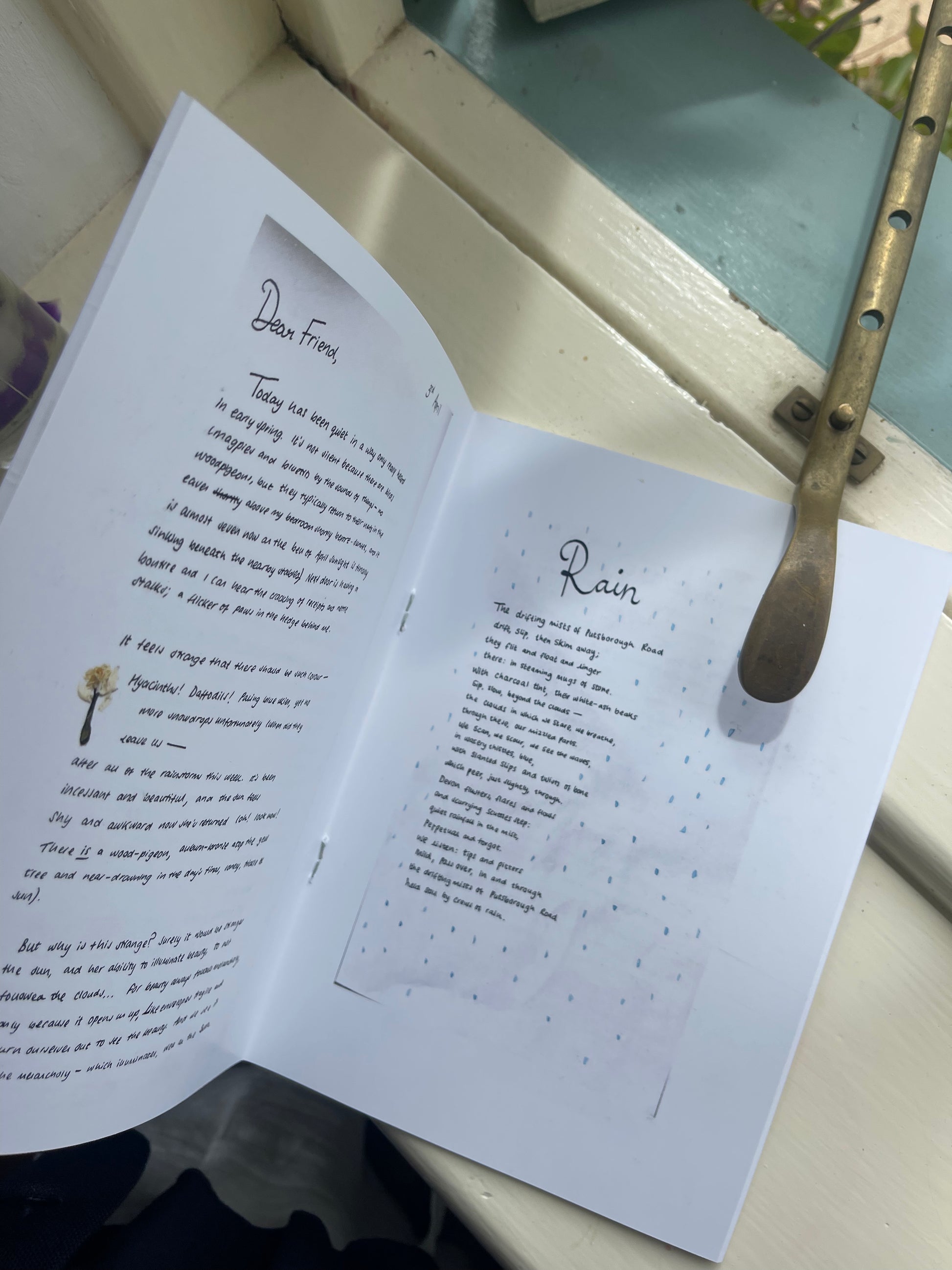 This is a fascimile scan of the nature journal I kept through Spring 2023. It is a collection of poems, letters, paintings and pressed flowers.